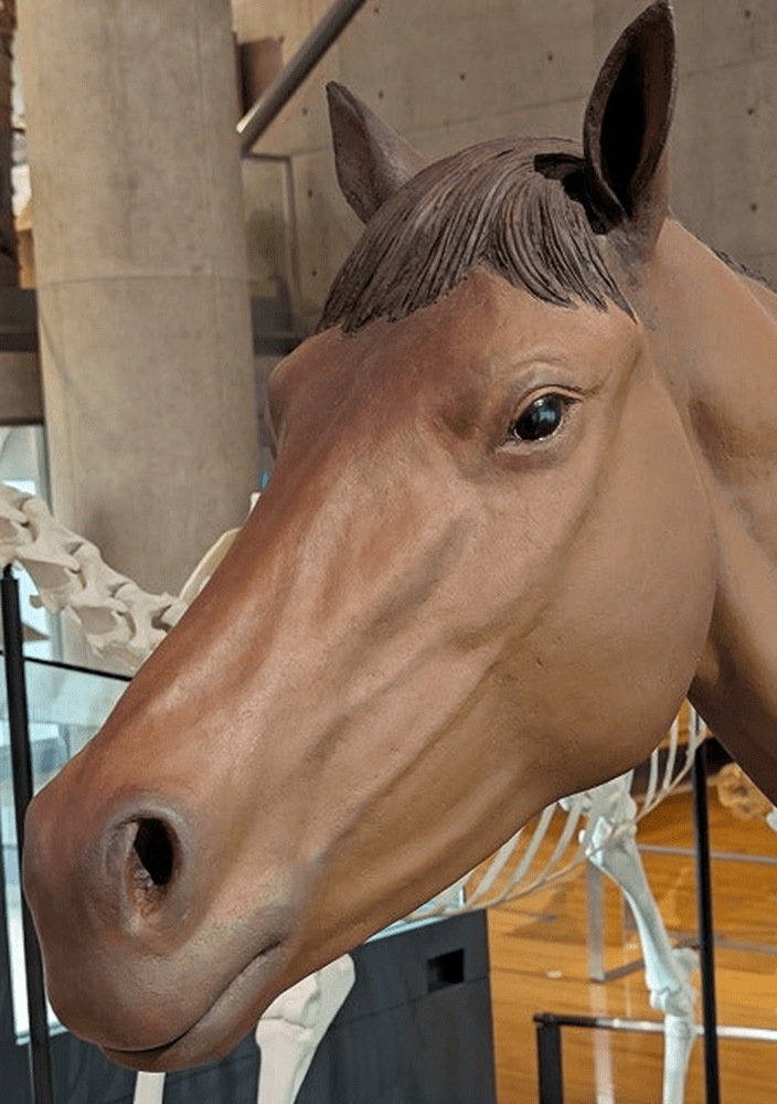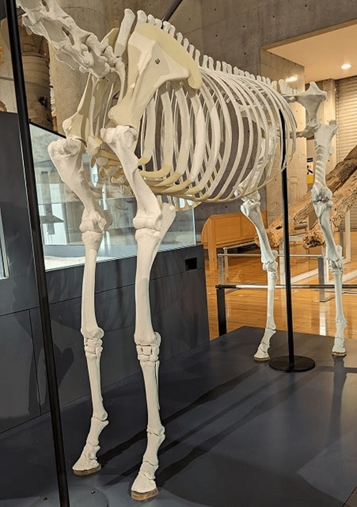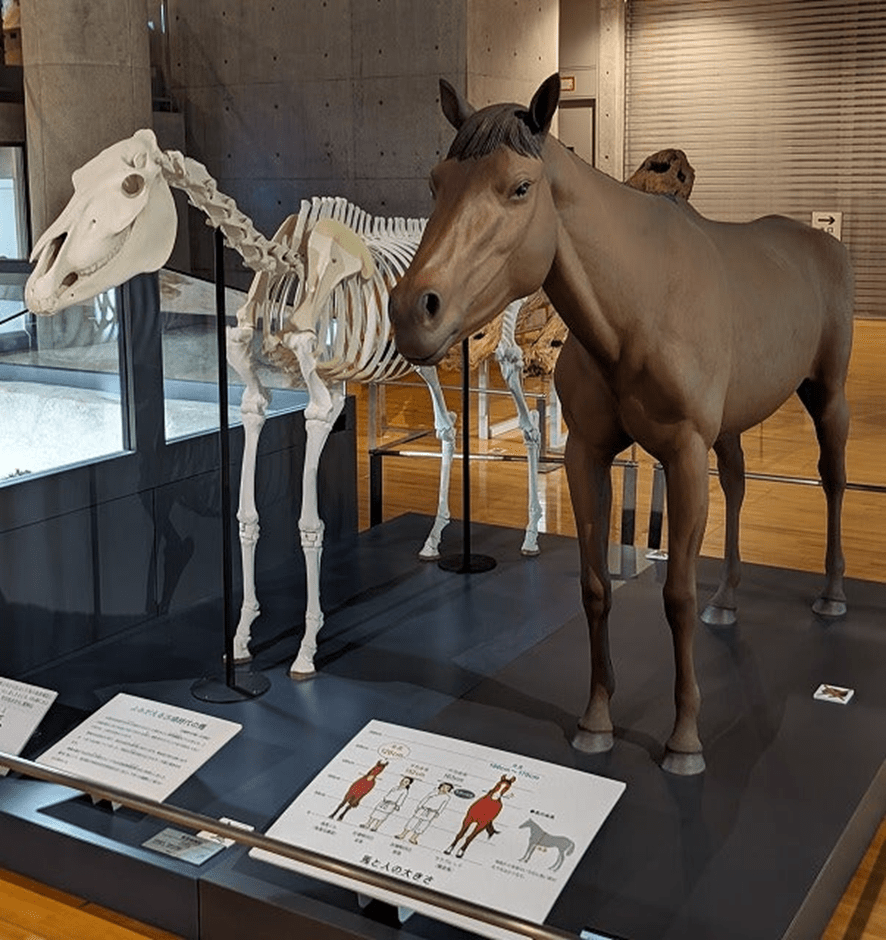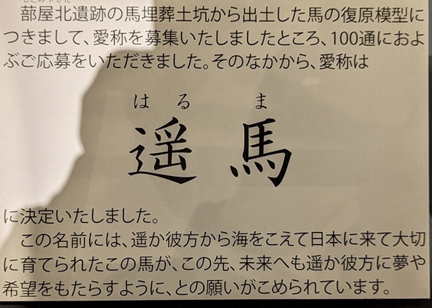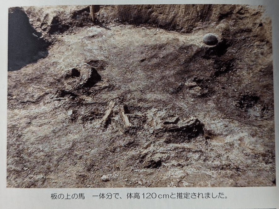 The catalogue of the special exhibition Kana, held at the Kyushu National Museum from January 24 to March 19, 2023, includes a column titled “Pastures on the Western Foothills of Mount Ikoma,” which states that the horse excavated from the Shitomiya-Kita Site was medium-sized and descended from Mongolian horses. However, this is incorrect, as Mongolian horses have 66 chromosomes, whereas Japanese native horses have 64.