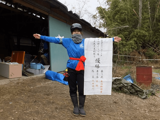“The champion is Saori Iwanami of Settsu Province. Her horsemanship was splendid—truly admirable. Accordingly, Ōmi jōfu cloth is hereby awarded.”